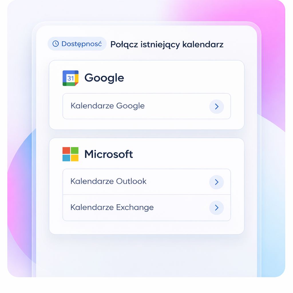 Dzięki Strona24.pl i Calendly połączysz swoją stronę nawet z 6 kalendarzami (np. Google, Outlook), co pozwoli automatycznie planować spotkania i na bieżąco kontrolować dostępność w czasie rzeczywistym.